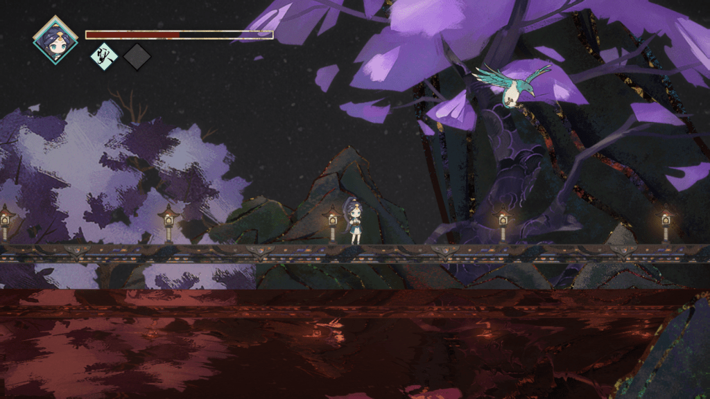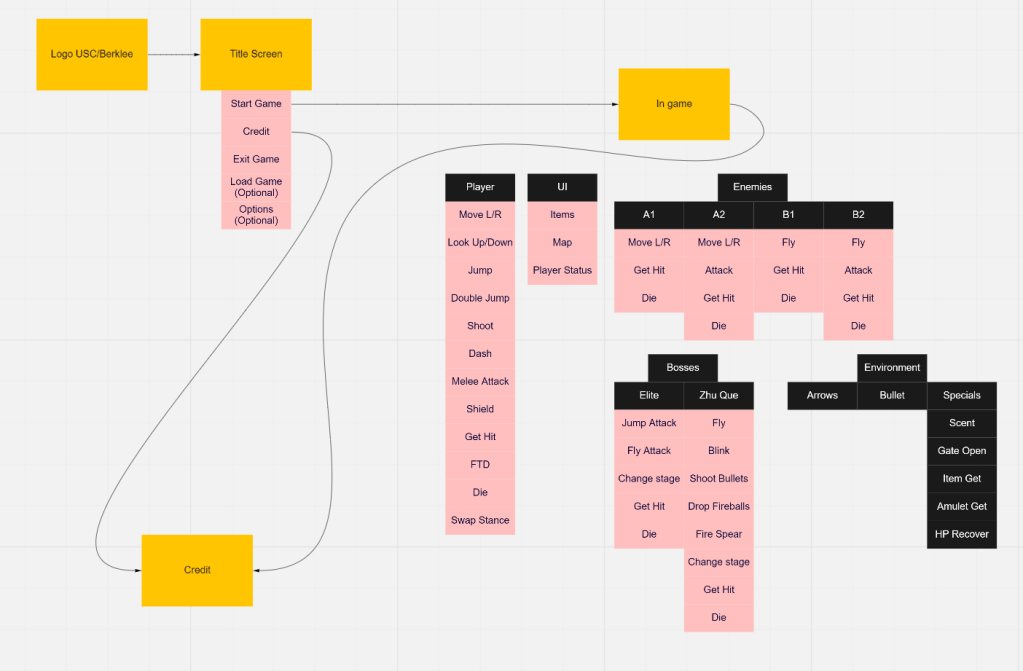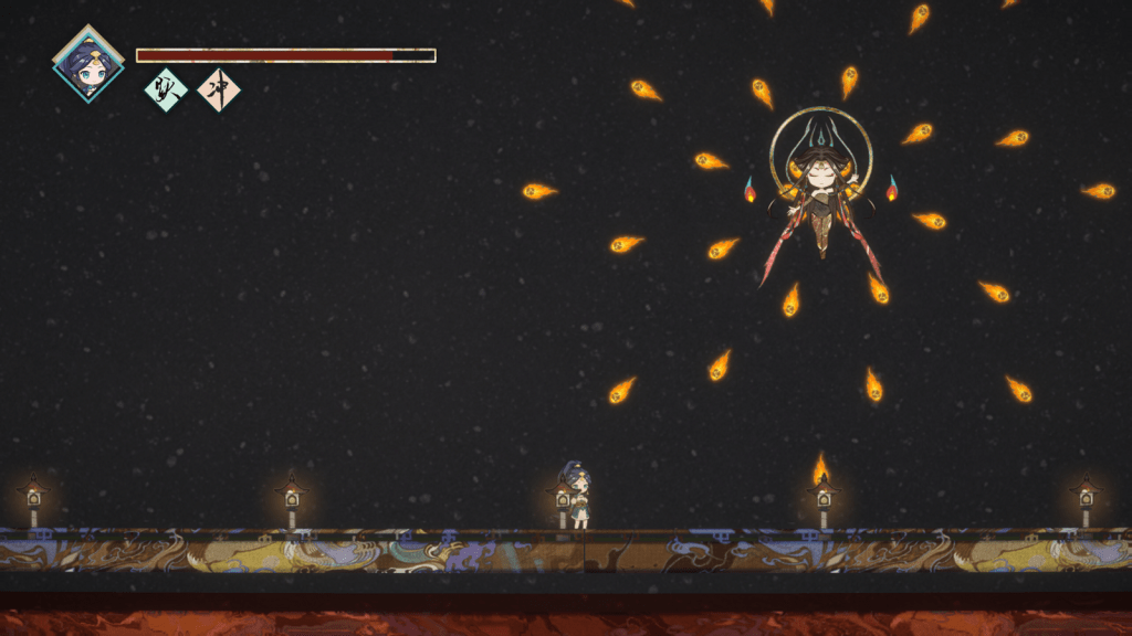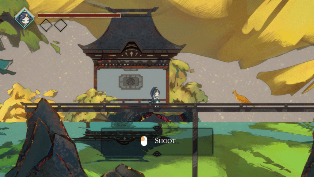 The player can move and jump between platforms with a keyboard and shoot the enemy with a mouse. As the game progresses, the player will get the double jump ability and dash ability, which enables them to jump higher and move further. The game will culminate with an exciting boss fight, and will challenge Zhu Que by shooting her and dodging several different attack patterns.